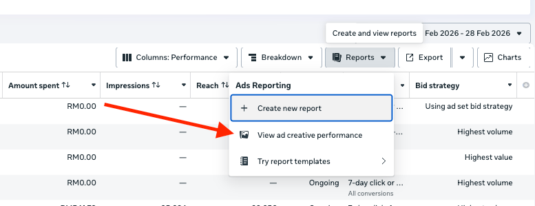 Pergi ke Ads Manager > Campaign > Tekan Reports