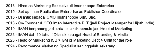 Jadi ini adalah timeline karier saya di IMAN;